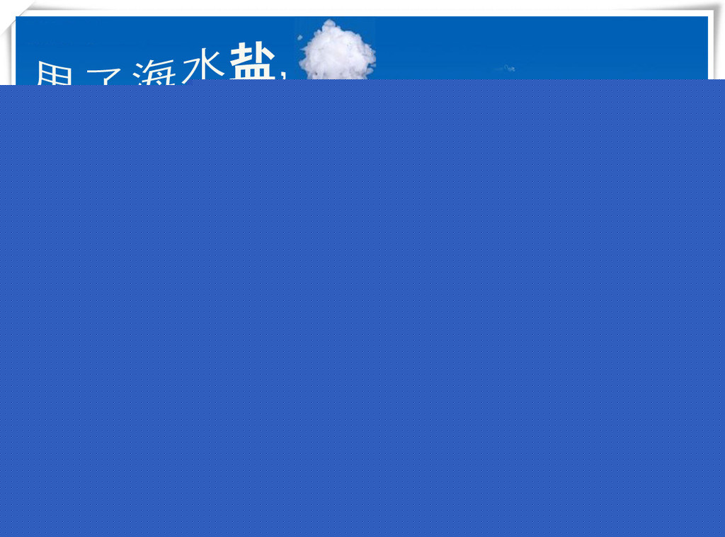 海水晶:是海水主要成分的浓缩物。主要用于河口或低盐度地区虾育苗或养成,配制人工海水进行海水化苗种繁育,并广泛用于内陆水族馆等休闲渔业对海水的需求。