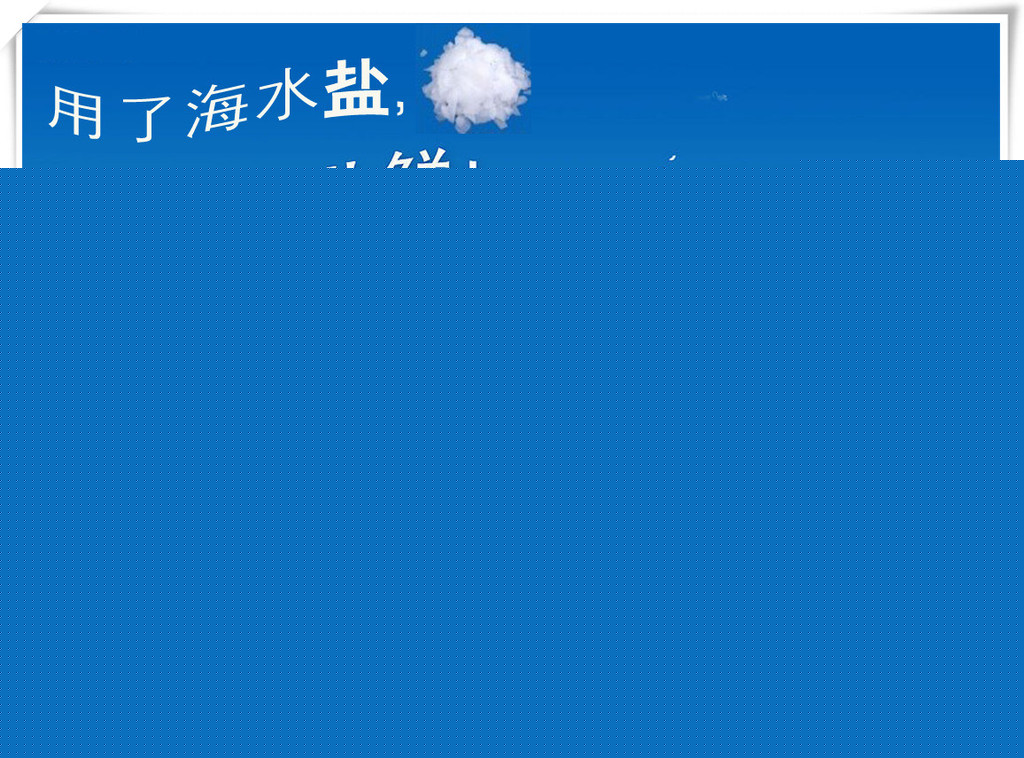 海水晶:是海水主要成分的浓缩物。主要用于河口或低盐度地区虾育苗或养成,配制人工海水进行海水化苗种繁育,并广泛用于内陆水族馆等休闲渔业对海水的需求。