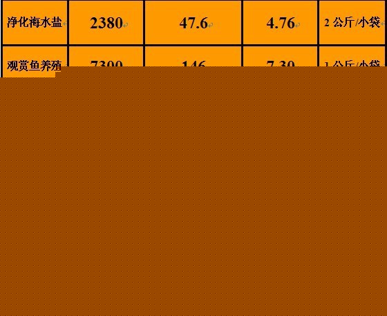海水晶:是海水主要成分的浓缩物。主要用于河口或低盐度地区虾育苗或养成,配制人工海水进行海水化苗种繁育,并广泛用于内陆水族馆等休闲渔业对海水的需求。