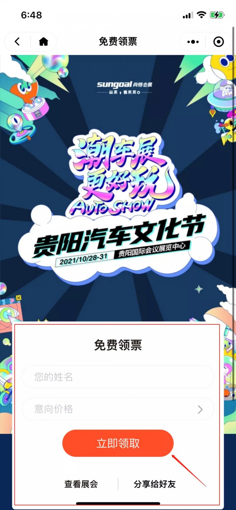 点击“立即领取”,即可获得一张车展门票